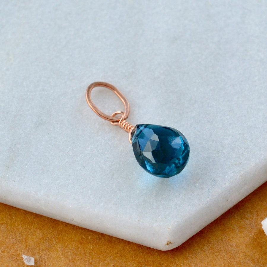 Blue Topaz Teardrop Birthstone Pendant December Blue Gemstone Rose Gold Plated Dainty Handmade Charm Jewelry
