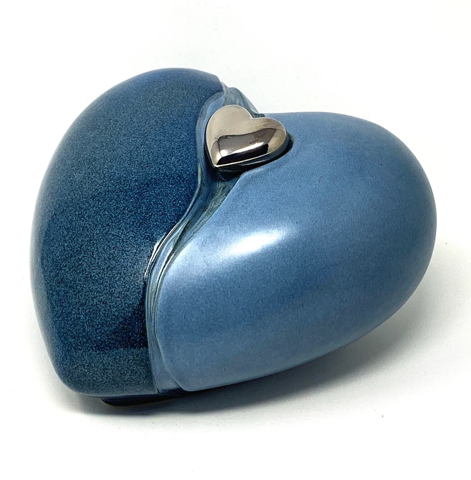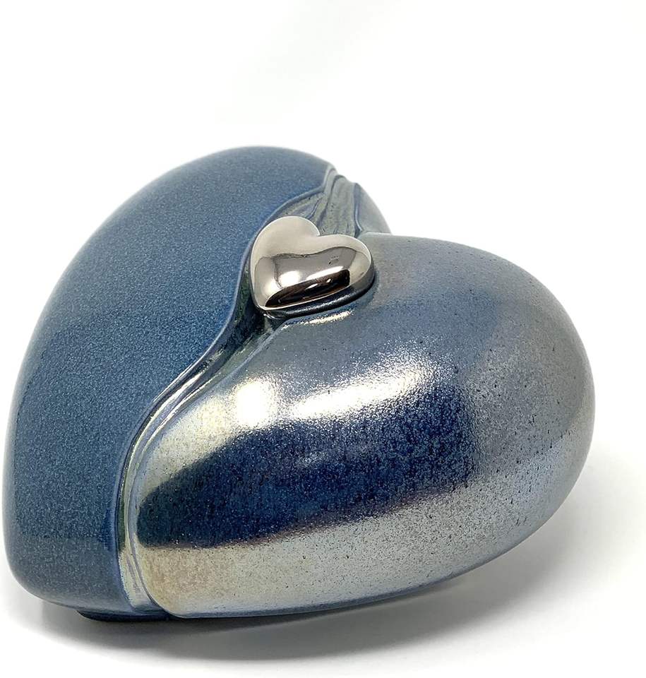 Urne funéraire en forme de cœur bicolore bleu avec mini cœur pour cendres, Cœur pour cendres funéraires en métal laiton/aluminium