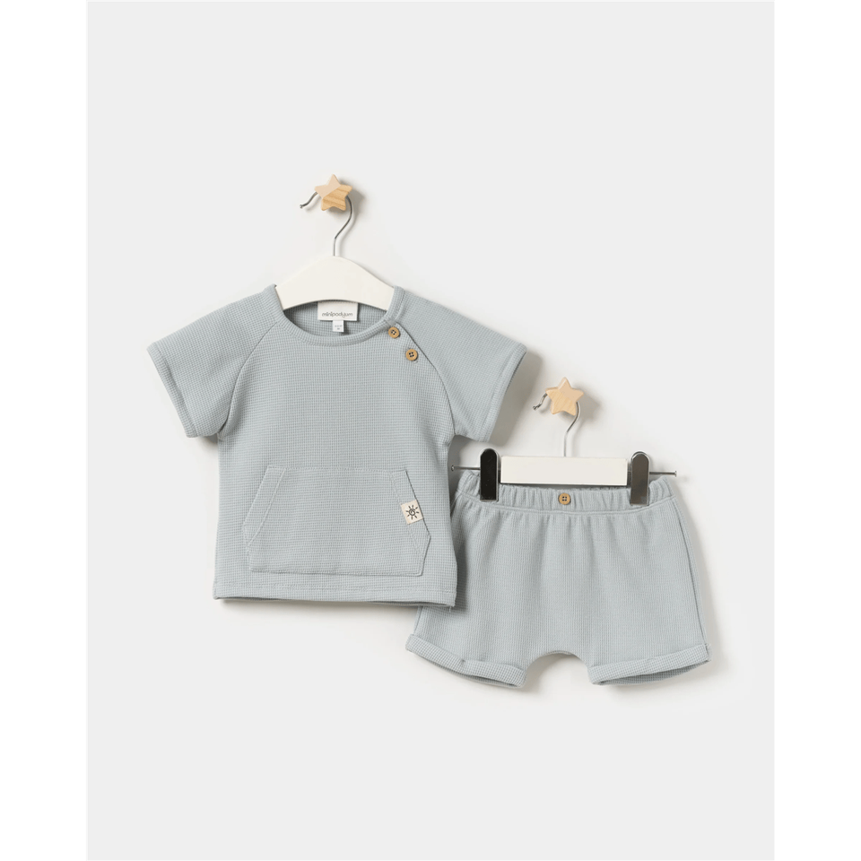 Ensemble deux pièces bleu unisexe pour bébé avec short à poche kangourou, en coton extensible respirant, tenue décontractée, 6-24 mois, fabriqué en Turquie