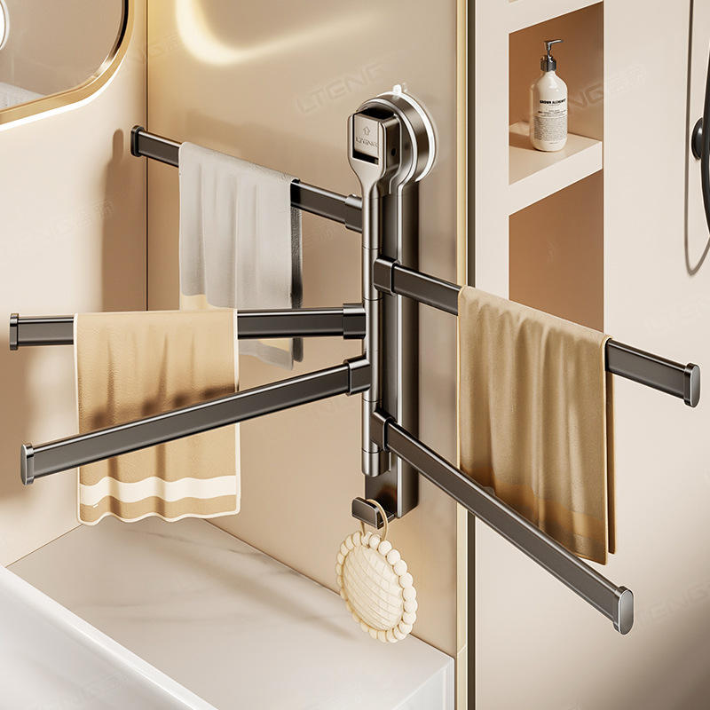 Porte-serviettes rotatif à ventouse Blue Vine, 4 barres, mural, réglable, pour rangement de salle de bain