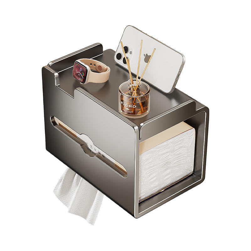 Porte-papier toilette rectangulaire auto-adhésif Blue Vine, couleur gris anthracite, moderne, fixation murale sans perçage, étagère de salle de bain