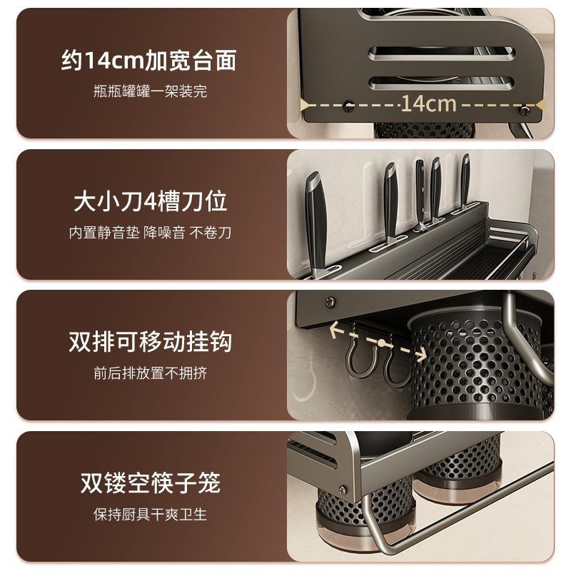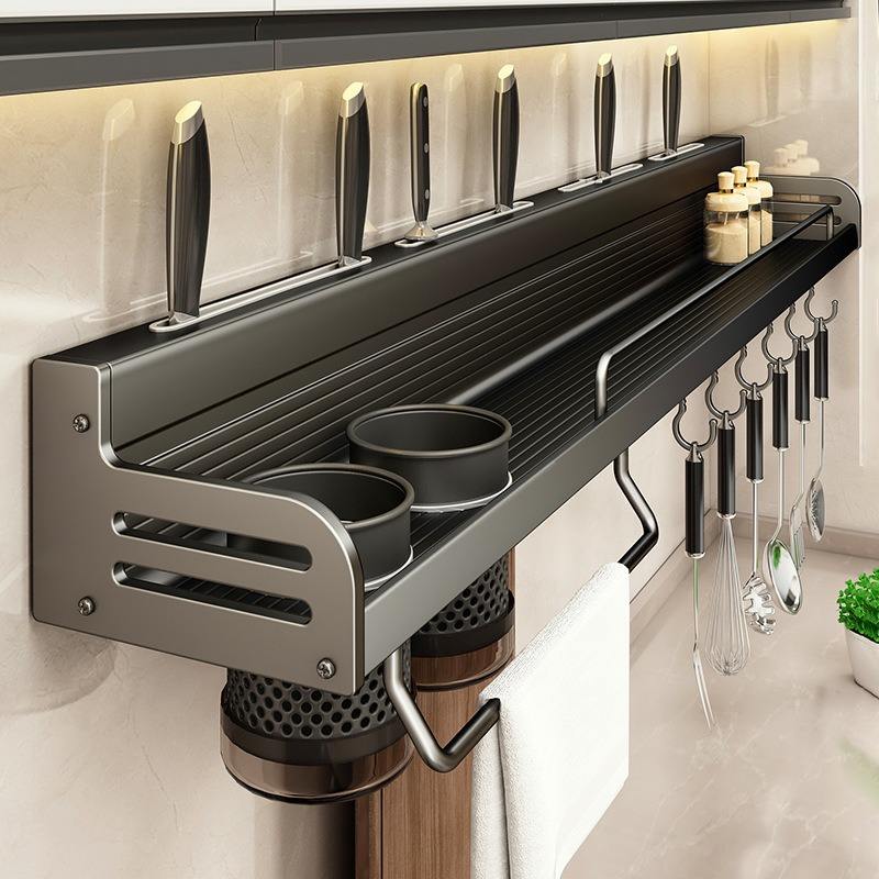 Étagère murale de rangement de cuisine Blue Vine en aluminium, support à couteaux et condiments, design rectangulaire sans perçage LT-6225Q