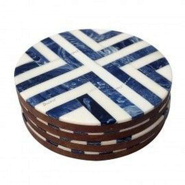 Sous-verres en incrustation d'os bleu et blanc 4 pièces avec ensemble de support tapis de table de cuisine et tampons résistance à la chaleur tasse sous-verre Protection de Table