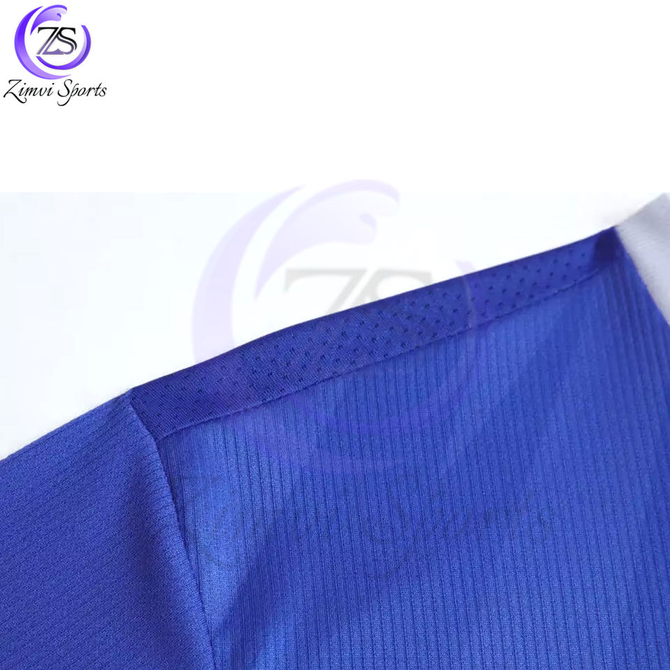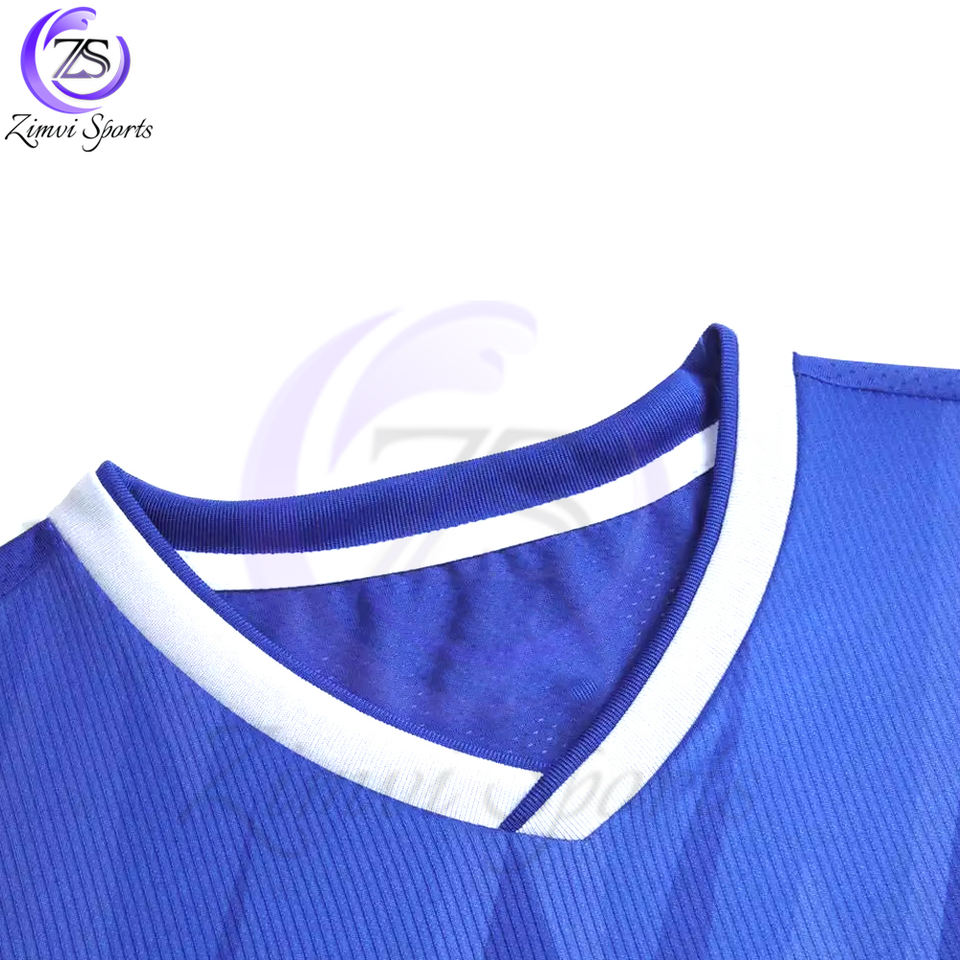 Blue White Color Half Sleeve Custom Adult Soccer Boys Football Kit Women Sports Training Wear V Neck Style Soccer Uniforms