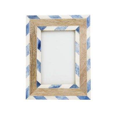 Cadre photo rectangulaire en résine et bois fait main avec incrustation florale bleue et blanche, design vigne artistique et élégant, idéal comme cadeau décoratif de table