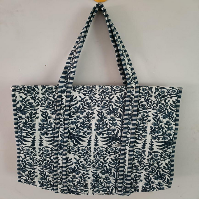 Blue White Solid Color Quilted Cotton Fashionable Tote Bag Long Shoulder Handles Handmade Reusable Womens Shopping Bag All