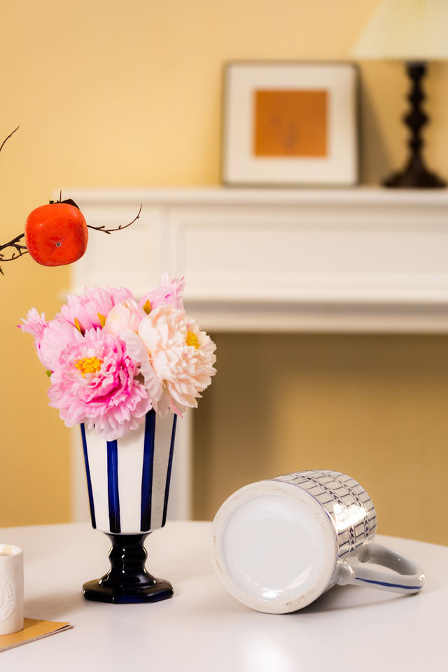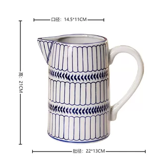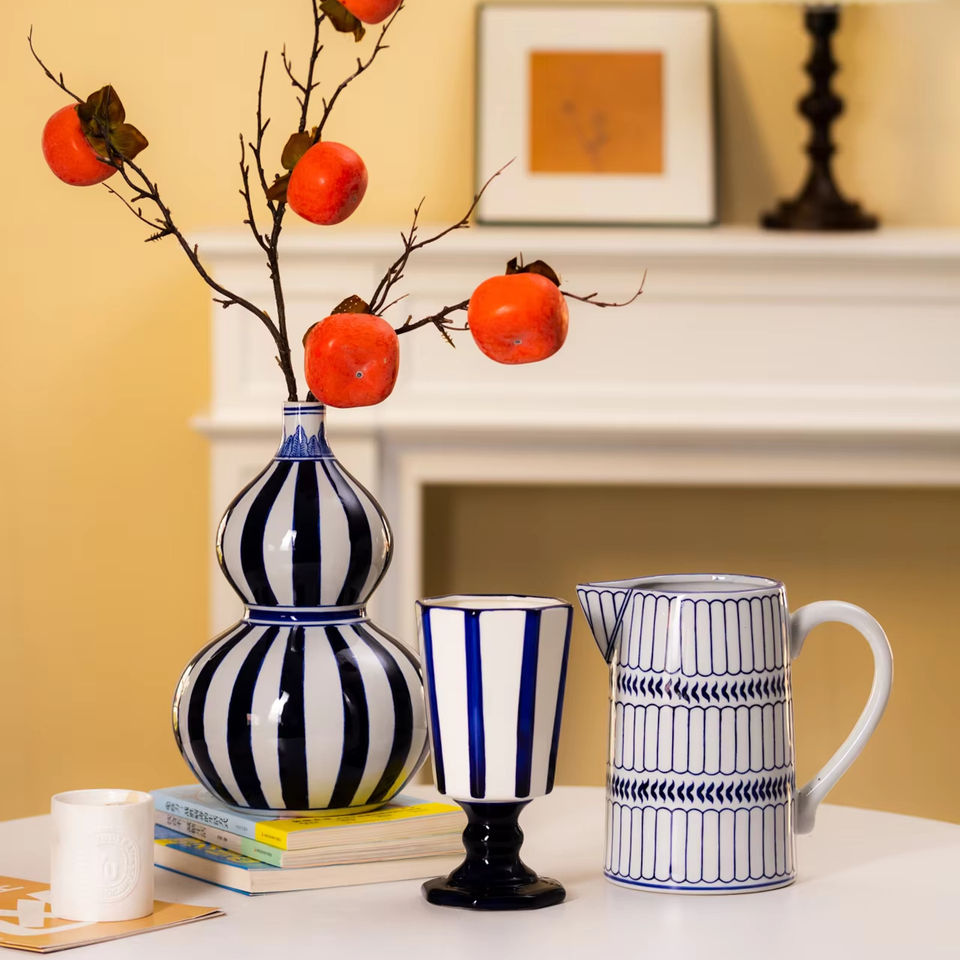 Ensemble de vases en céramique rayés bleu et blanc, pichet et gobelet en porcelaine peints à la main, décoration d'intérieur chinoiserie moderne