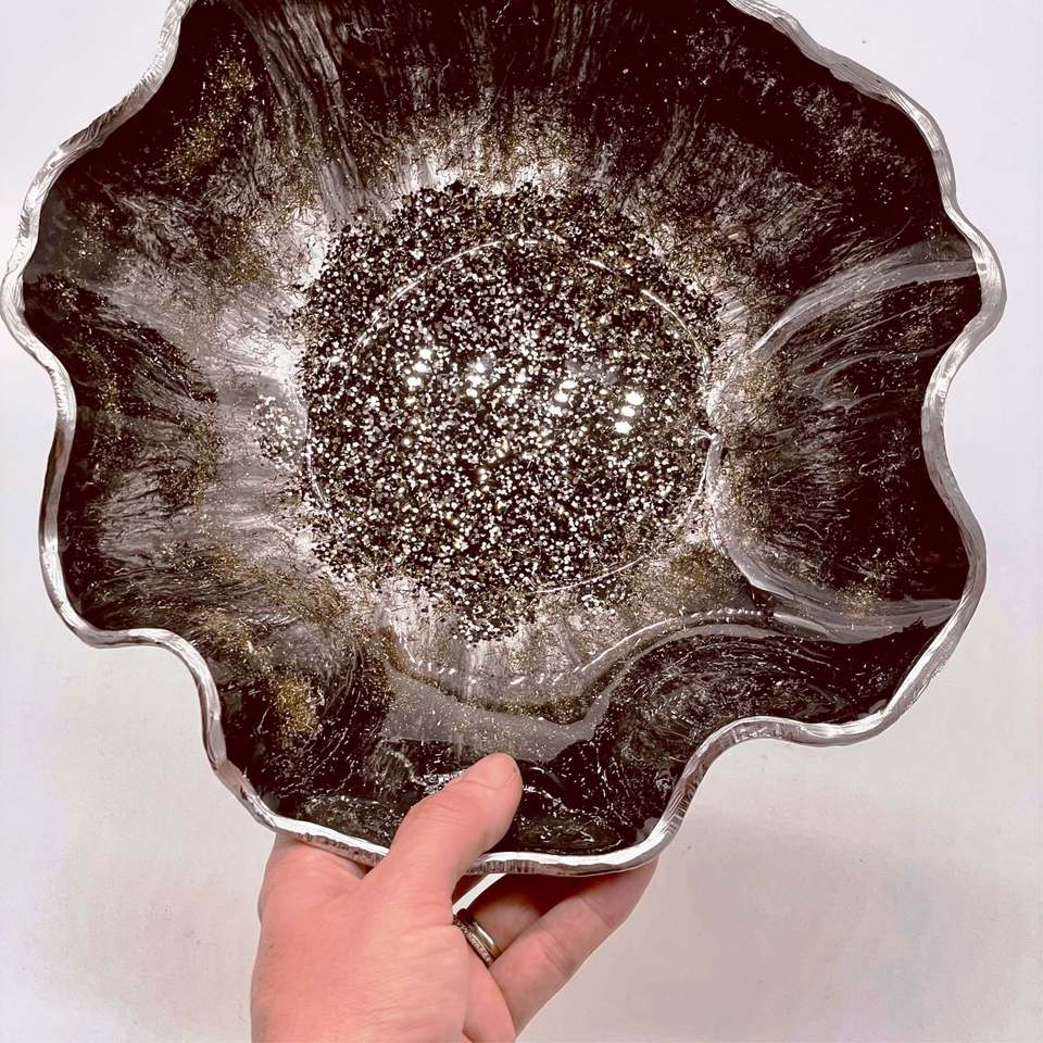 Bols de service en résine à deux compartiments bleu et blanc, faits à la main, polis, écologiques, d'origine indienne, compatibles lave-vaisselle, design moderne pour les fêtes