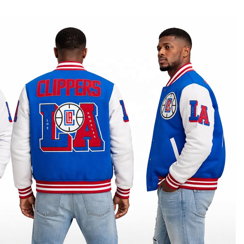 Blue & White Varsity Baseball Jacket Chenille & Embroidery Logos College OEM Casual Bomber Baseball Varsity Letterman