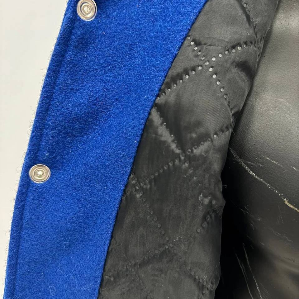 Vestes universitaires en laine bleu et blanc, style personnalisé, veste universitaire pour hommes, vente en gros, veste de baseball avec manches en cuir