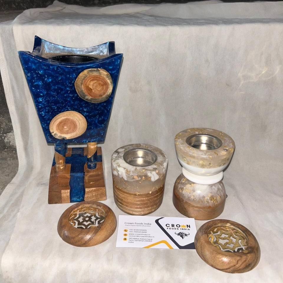 Bleu Bois Fait À La Main Écologique Brûleur D'encens Madhkan Titulaire Époxy Bakhoor Titulaire Arabe Aromathérapie Diffuseur En Gros