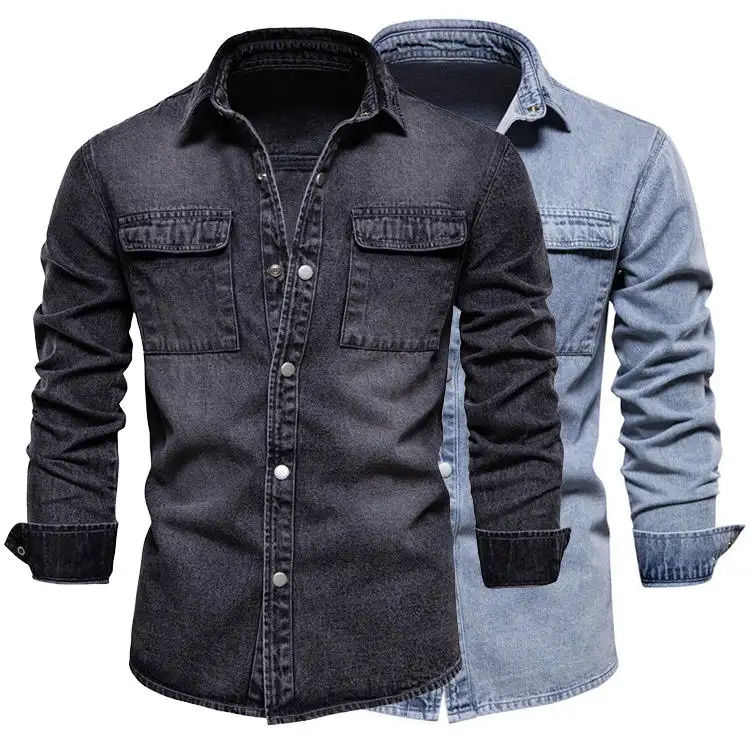 Blue and Black Denim Jacket Men Autumn Fashion Cool Trendy Men's Jean Jackets Casual Coat Outwear OEM Service Customized