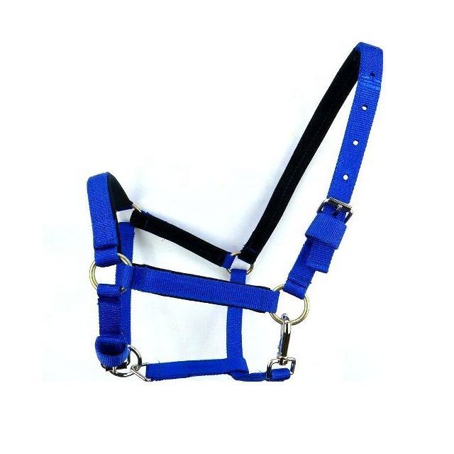 Halter en nylon bleu et noir avec bandeau nasal rembourré de créateur en cuir PVC Style occidental toutes tailles pour l'équitation équestre