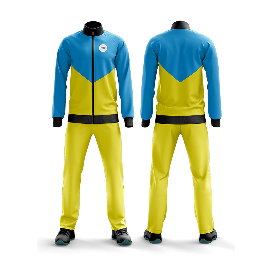 Kit de survêtement personnalisé bleu et jaune pour hommes et femmes, ensemble chemise et pantalon de survêtement avec votre propre design et logo