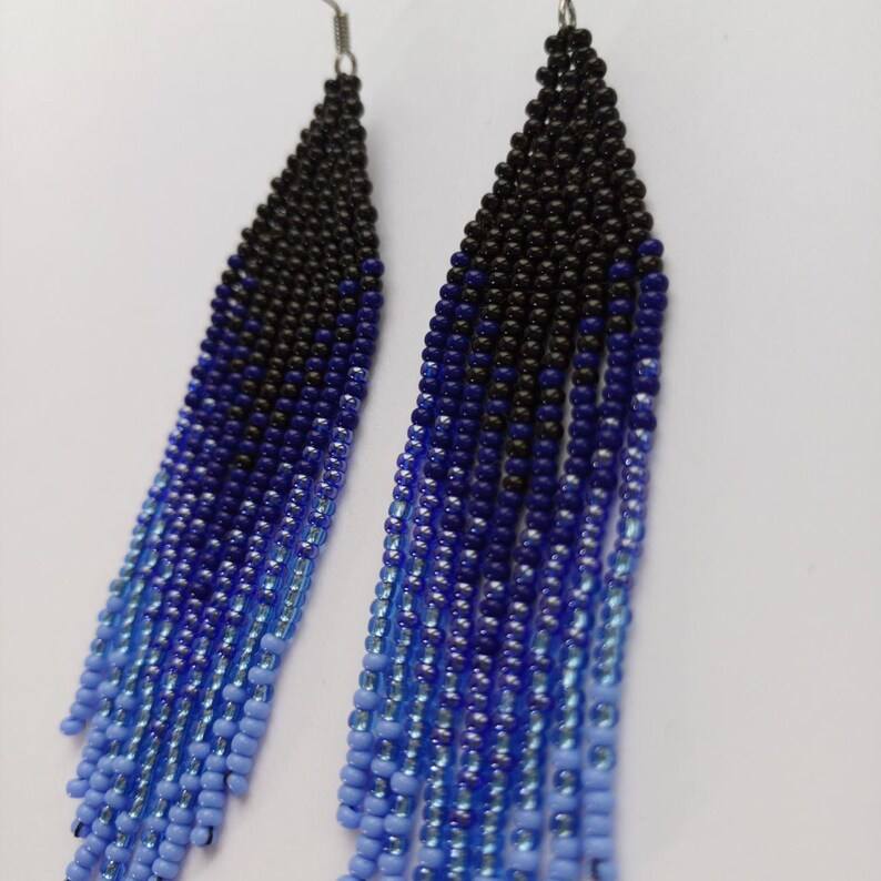 Blue beaded earrings Seed bead earrings Long earrings Dangle earrings Blue chandelier earring Boho earring