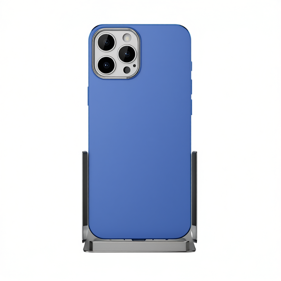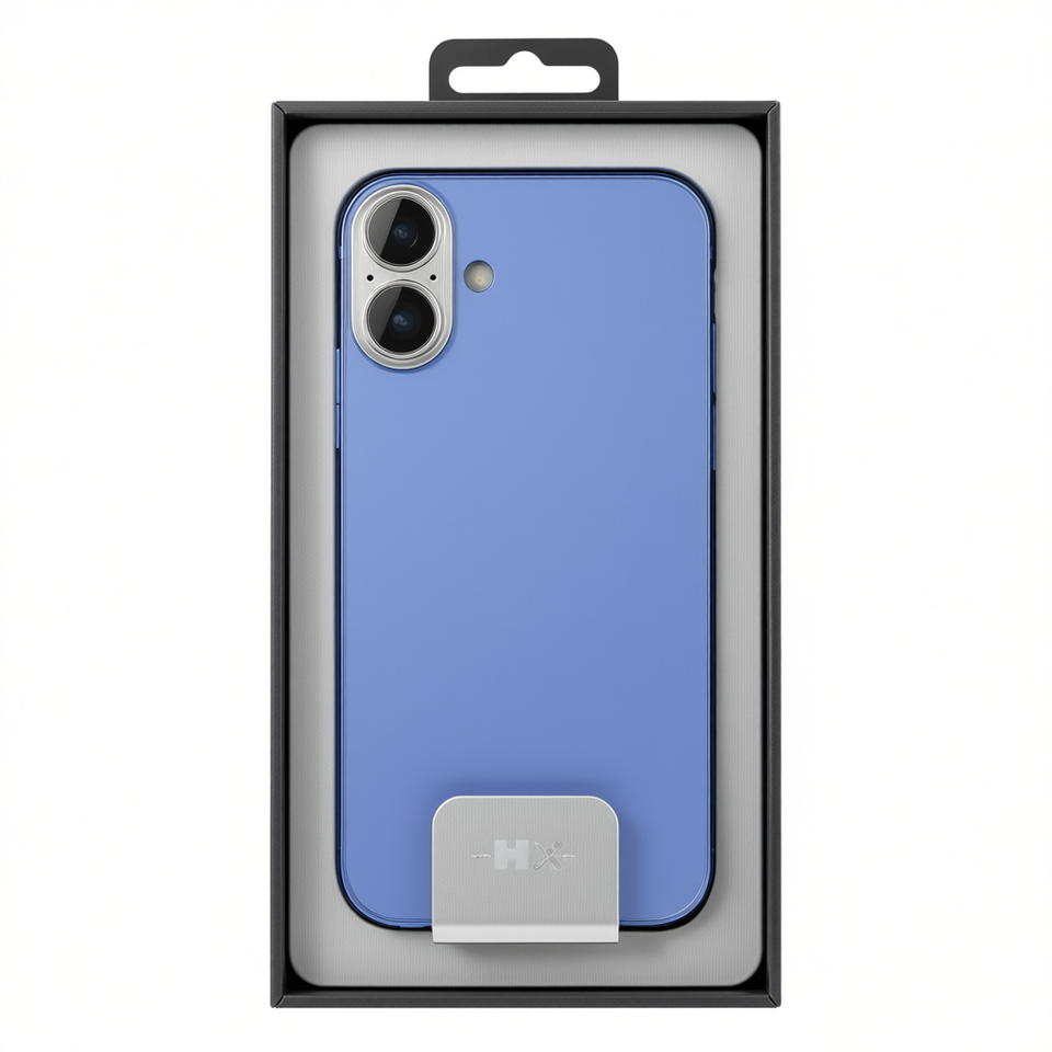 Coque arrière bleue pour iPhone 16 avec support métallique intégré et protection d'objectif – Étui de téléphone portable