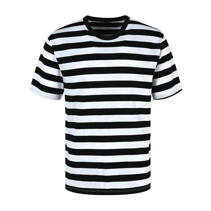T-shirts rayés bleus/blancs à col rond personnalisés pour hommes, femmes et unisexe, avec logo personnalisé, t-shirts rayés bleus et blancs