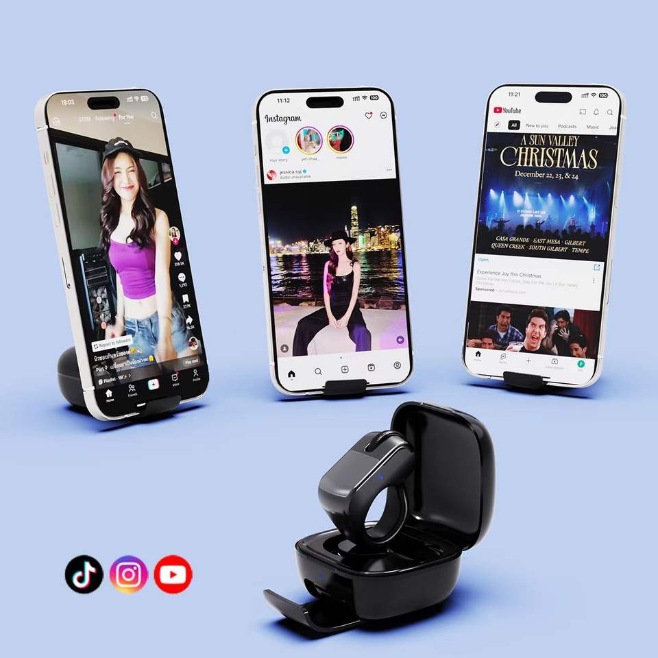 Souris Anneau Bluetooth Télécommande sans Fil pour Présentations, Défilement TikTok et Changement de Page pour Téléphone, iPad et Tablette