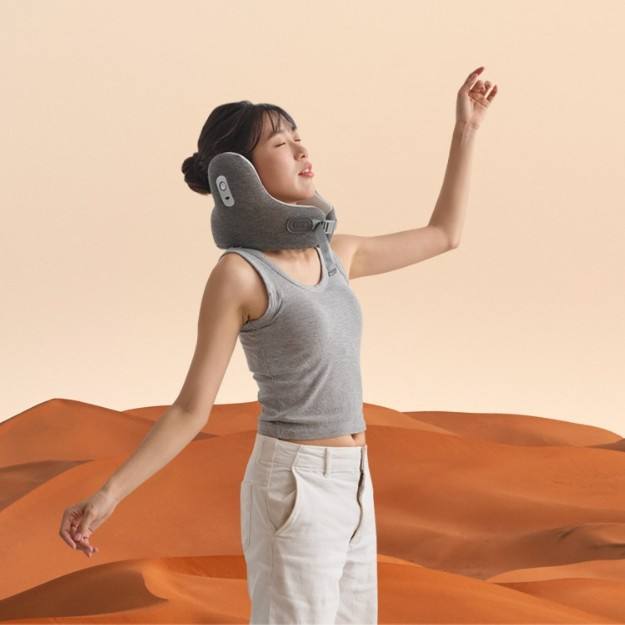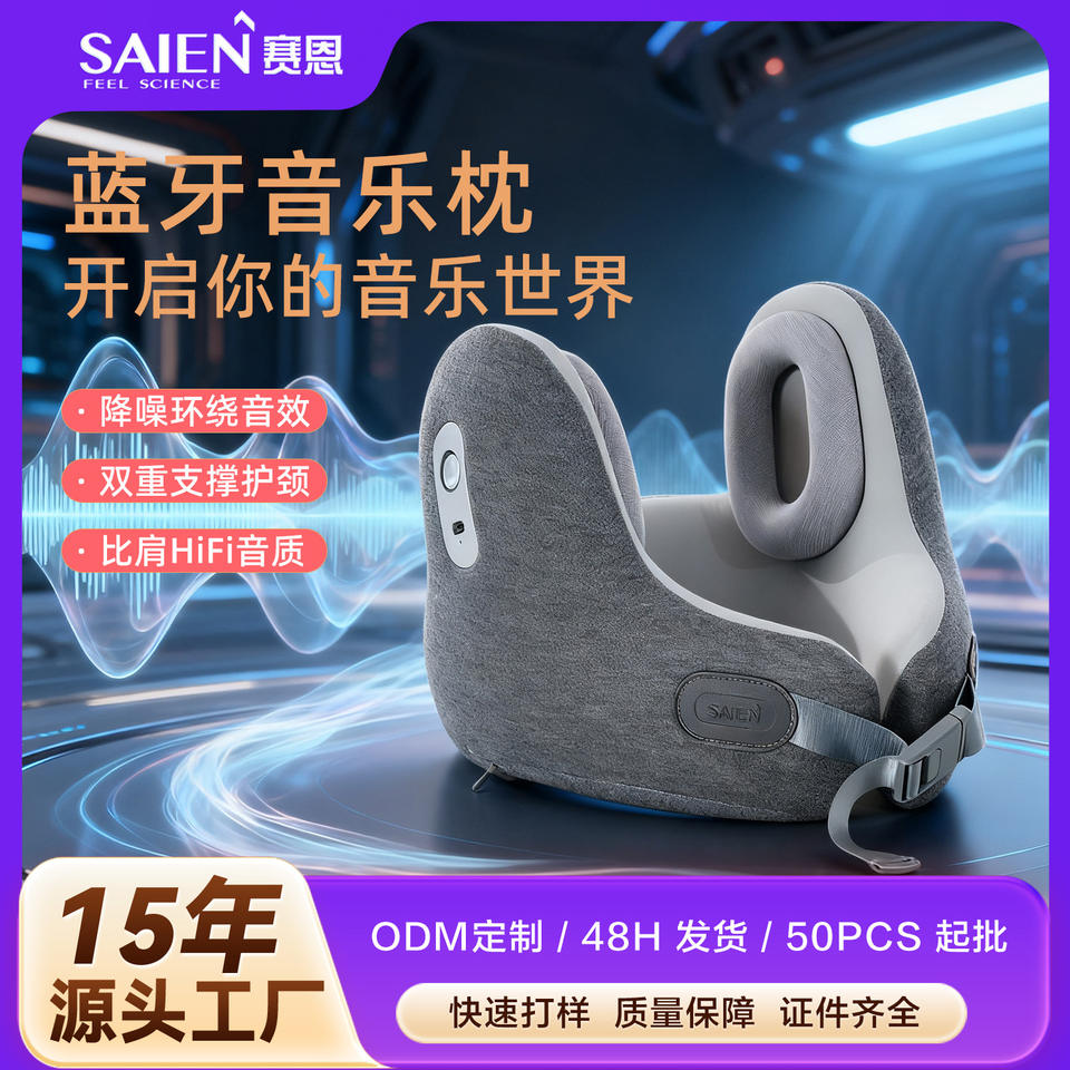 Oreiller de voyage en polyester en forme de U pour adultes, avec fonction musicale antibruit, Bluetooth, 28x26x14cm