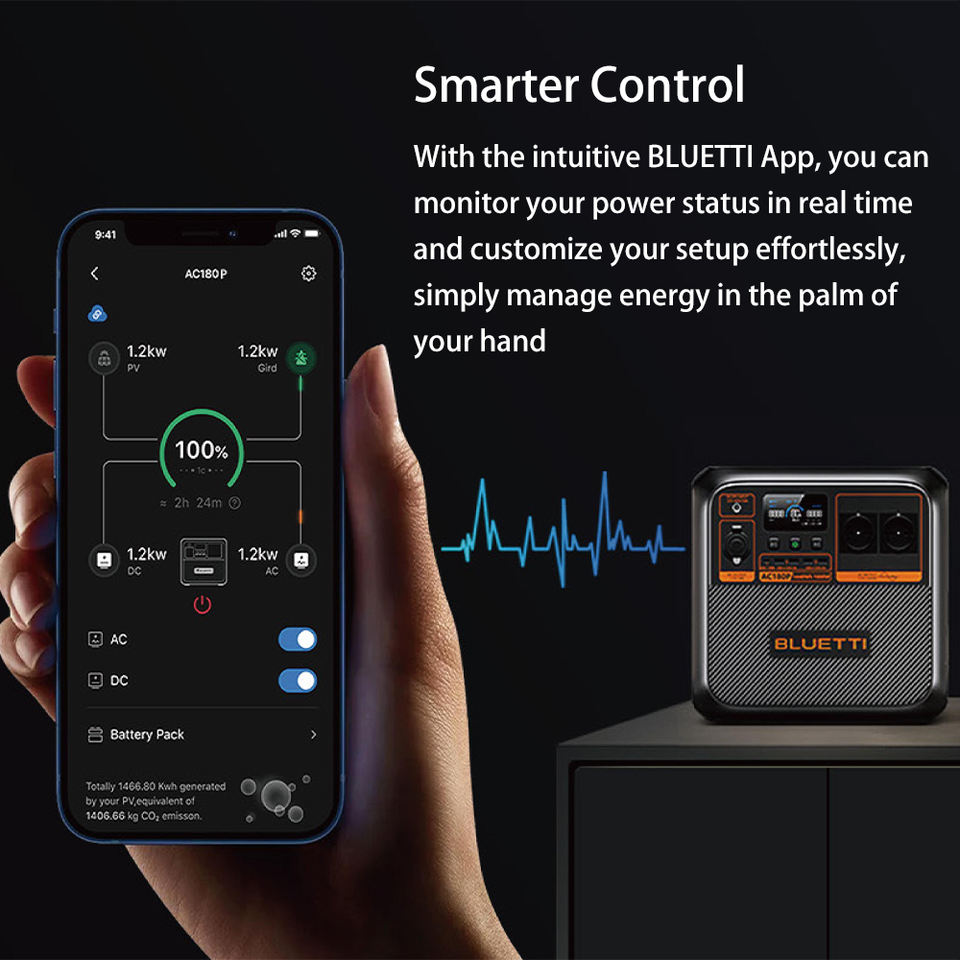 Bluetti AC180P + PV200 Kit de générateur solaire Panneaux solaires 1800 watts Générateur solaire Alternateur de charge Centrale électrique