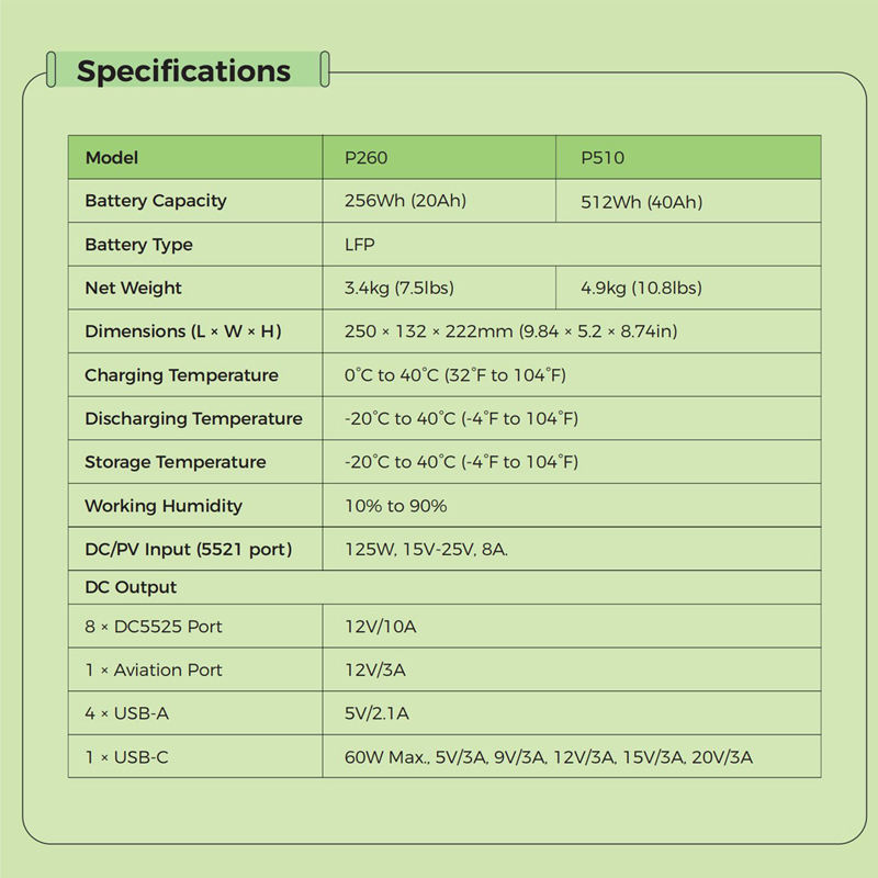 Capacité de la batterie:256 Wh (20 Ah) ; 512 Wh (40 Ah)