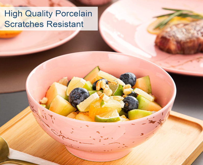 Service de vaisselle en céramique marbrée rose poudré, 16 pièces, assiettes, bols, mugs, pour 4 personnes, luxe, cuisine, hôtel, restaurant, mariage, vente en gros