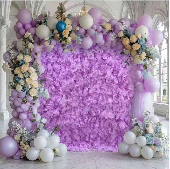Panneau de toile de fond en tulle bouffant - Décoration élégante et romantique pour cabines photo de fête et toiles de fond de mariage, mur de fleurs en organza
