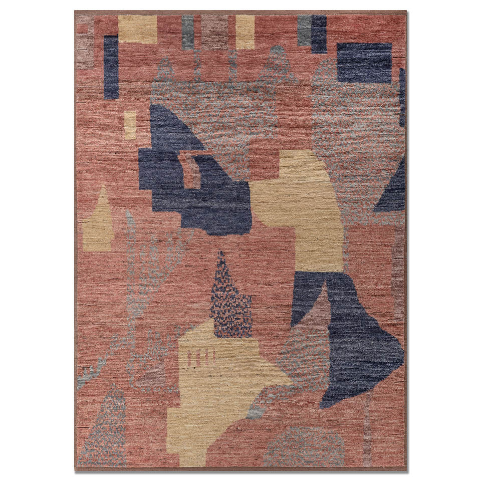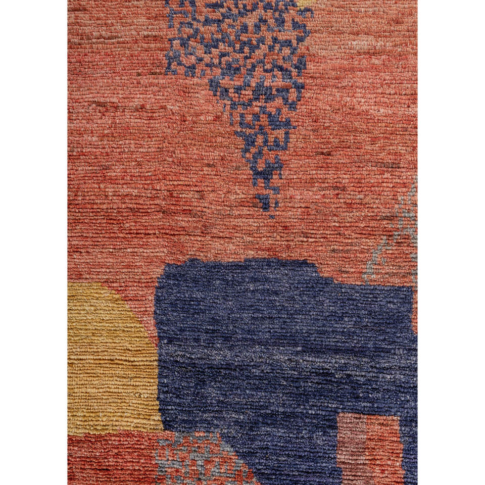 Tapis en laine noués à la main Blythe, motif abstrait rouge et orange, grande surface 9x12 pour entrée de maison, style Kilim - Re-1616