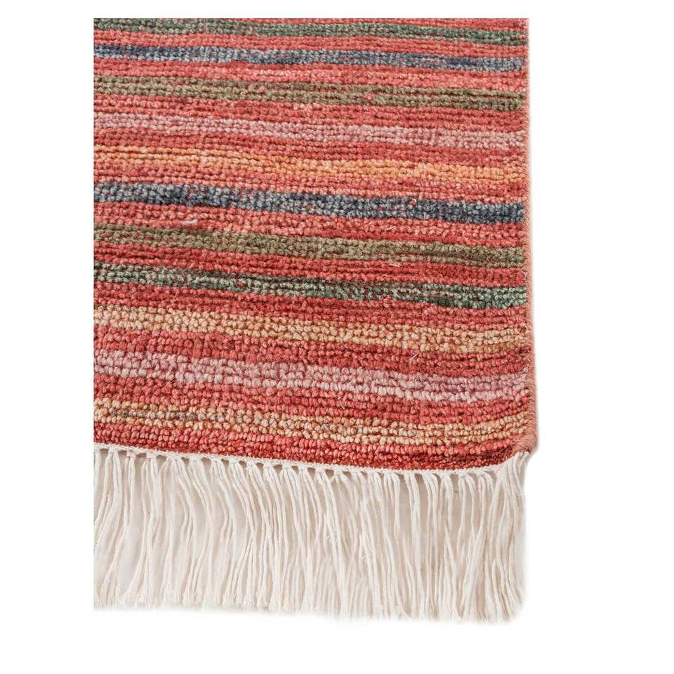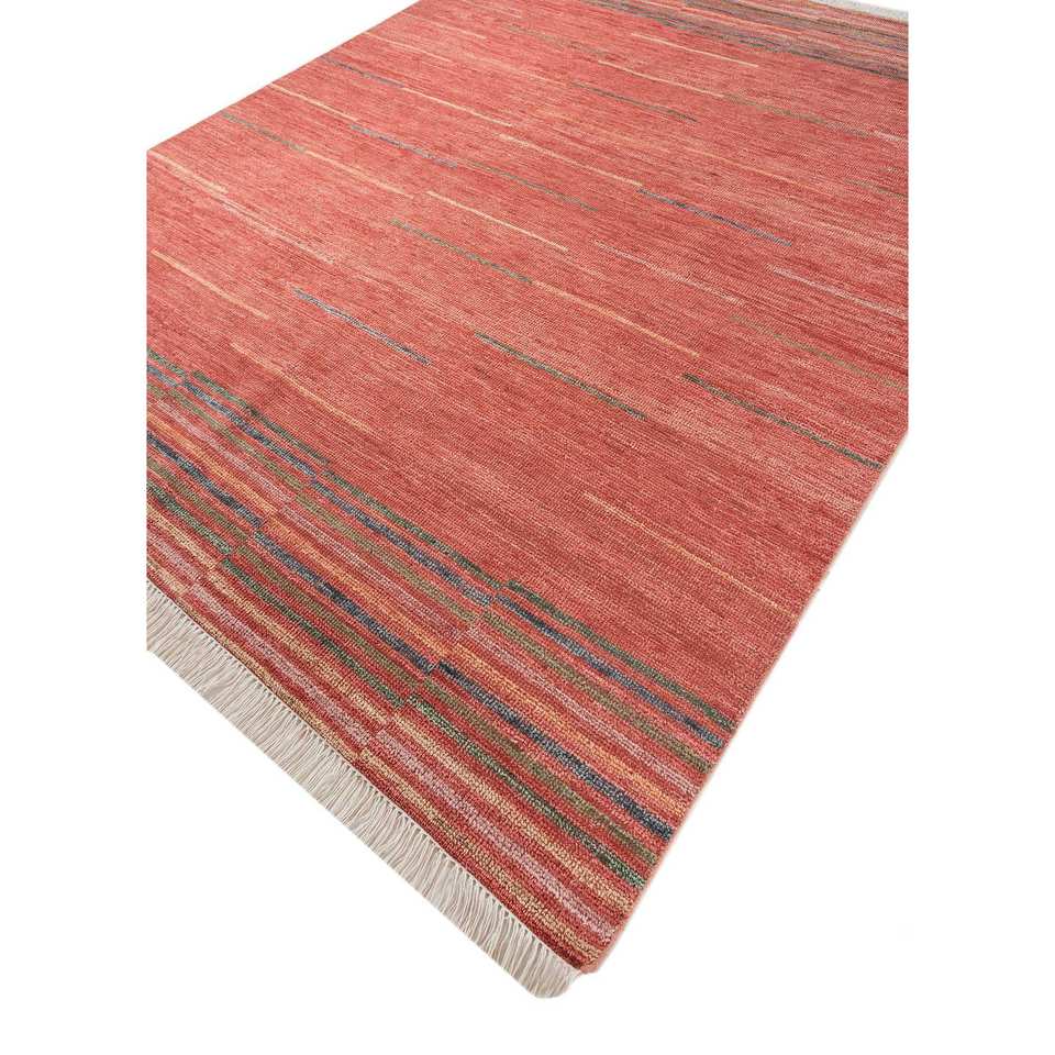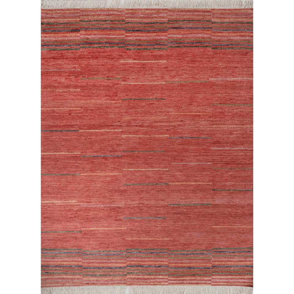 Tapis en laine grande surface Blythe rouge et orange noué à la main AKWL-1906 à motif rayé pour couloir et salon 9x12 pouces