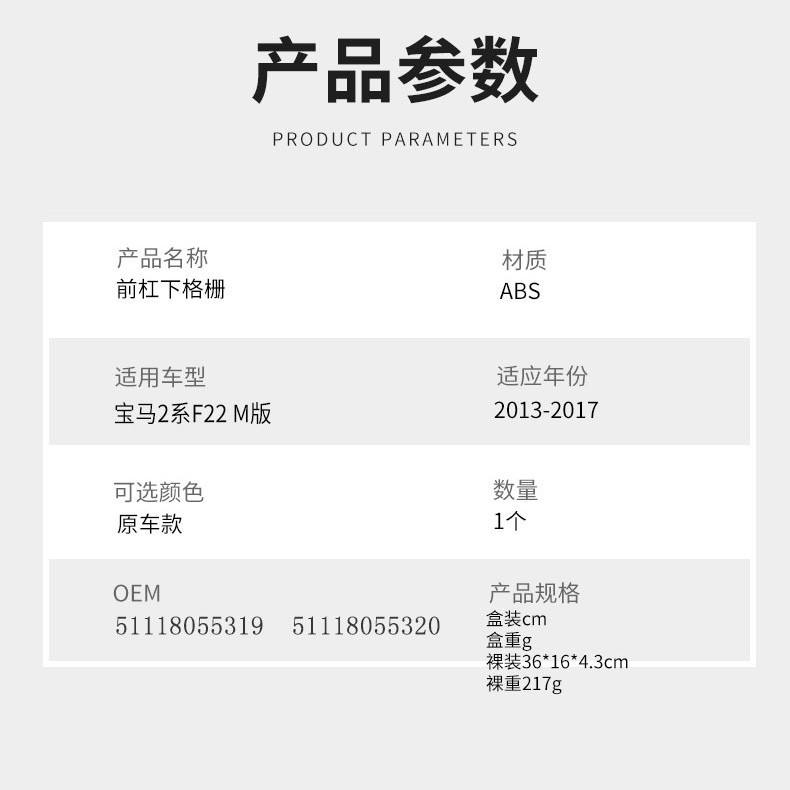 Applicable to 2013-2017 BMW 2 Series F22 F23 M modelsApplicable models