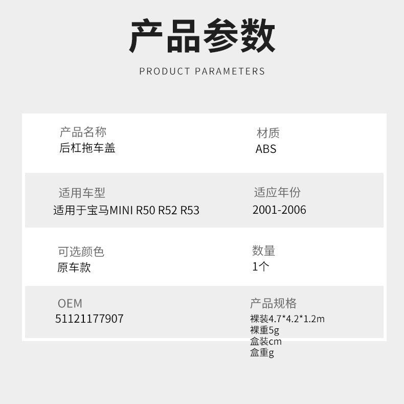 Cache-roue arrière en plastique ABS pour BMW Mini R50 R52 R53, accessoire de remorque automobile