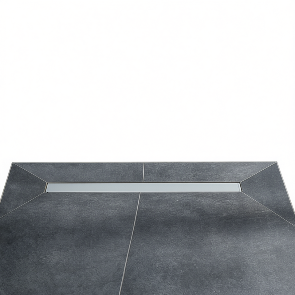 Receveur de douche carrelable 120x120 avec drain linéaire intégré pour un design au sol harmonisé