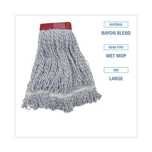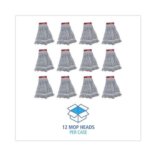 Têtes de balai serpillère Boardwalk 12/carton, larges, en rayonne/polyester, blanches/bleues, qualité supérieure pour sols