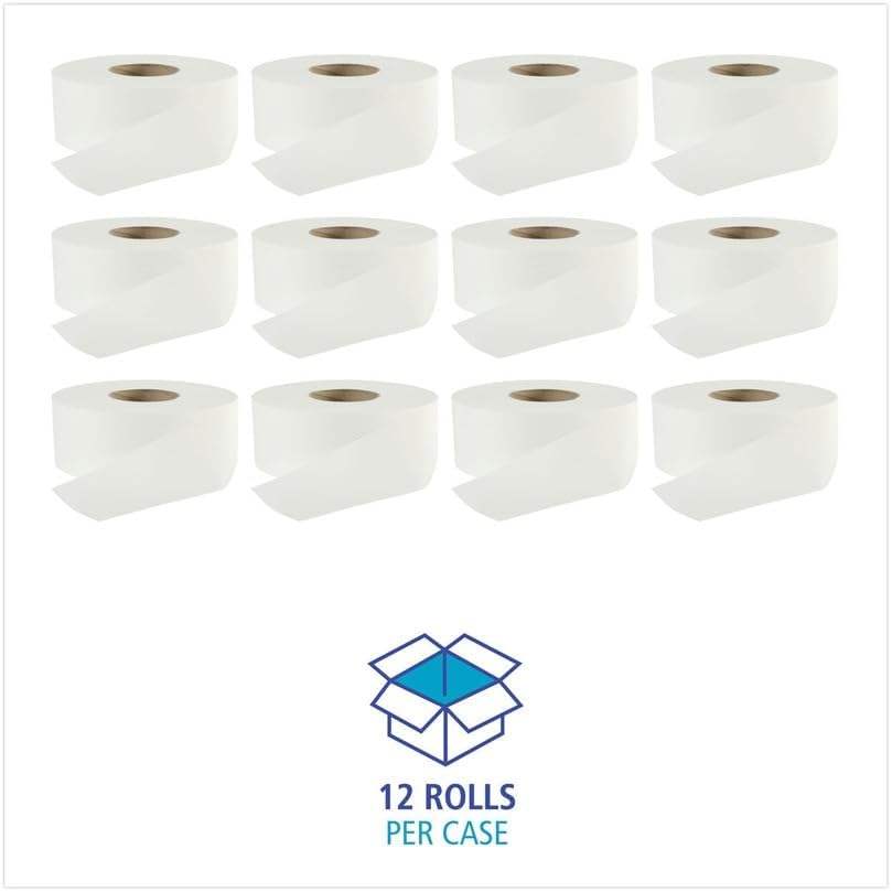 Papier toilette blanc en rouleau jumbo 2 plis, compatible fosses septiques, Boardwalk - 3,2 po X 525 pieds (12 rouleaux/carton)