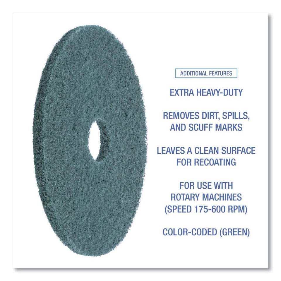 Pads de nettoyage commerciaux Boardwalk 4020GRE, 20 pouces de diamètre, verts, standard, 5 par carton