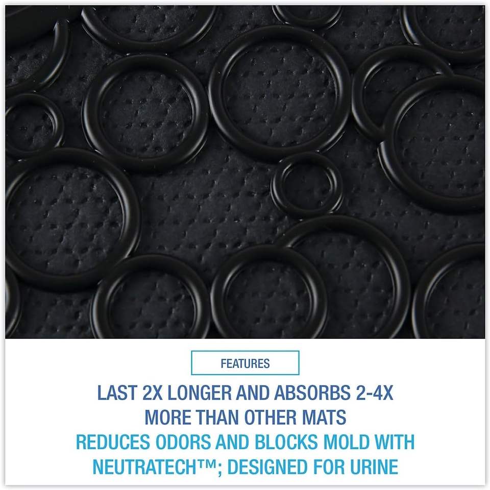 Tapis de toilette absorbant en caoutchouc Boardwalk Comfortable 2.0, 22 x 22, noir, imperméable et super absorbant pour usage domestique, 6 par carton