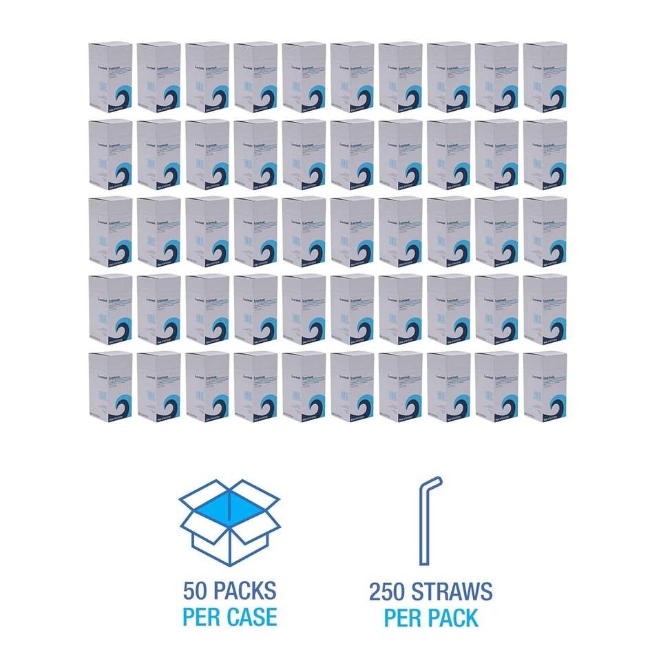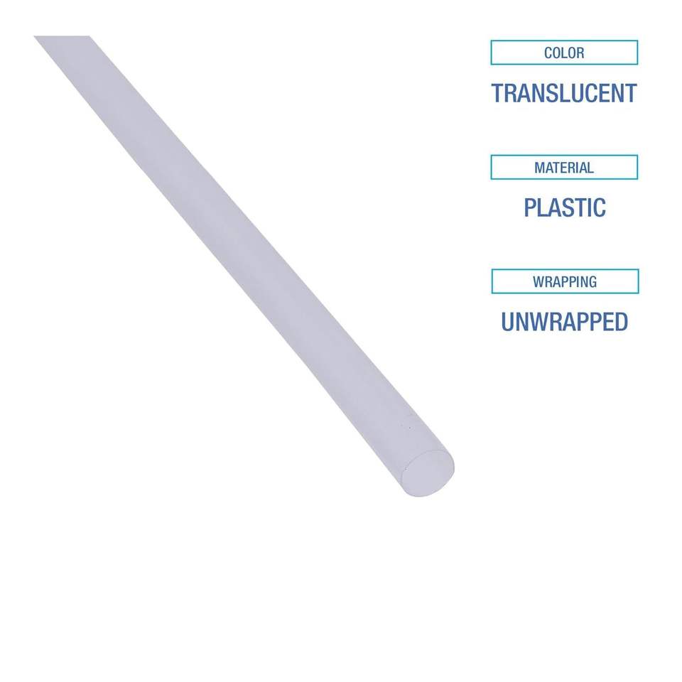 Pailles à boire en plastique translucide Jumbo Boardwalk JSTU775T50 non emballées, 7 3/4 pouces, paquet de 250, boîte de 50 paquets