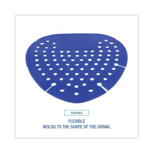 Écran de urinoir jetable solide Boardwalk parfum Bubble Gum bleu - 1 douzaine pour usage avec détergent de salle de bain