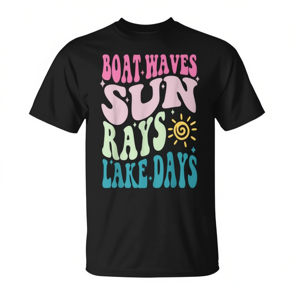 T-shirt Boat Waves Sun Rays Lake Days, design amusant pour l'été