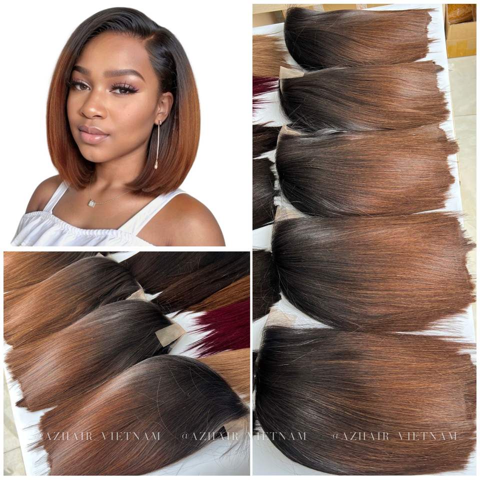 Bob Wig HD Lace Full Length Thickness Brown Tip Bone Straight Wig Various Colors 100% Raw Real Vietnamese Wholesale