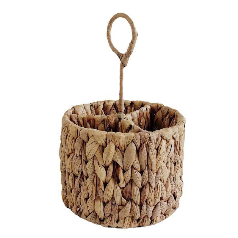 Panier de rangement rond Bobai en paille tressée fait main avec poignée pour l'organisation de bureau et une utilisation sur le bureau