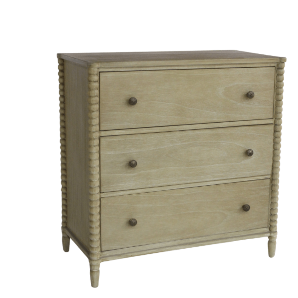 Bobby Collection Commode 3 tiroirs en bois massif Finition naturelle Commode de rangement pour chambre à coucher avec meubles en bois