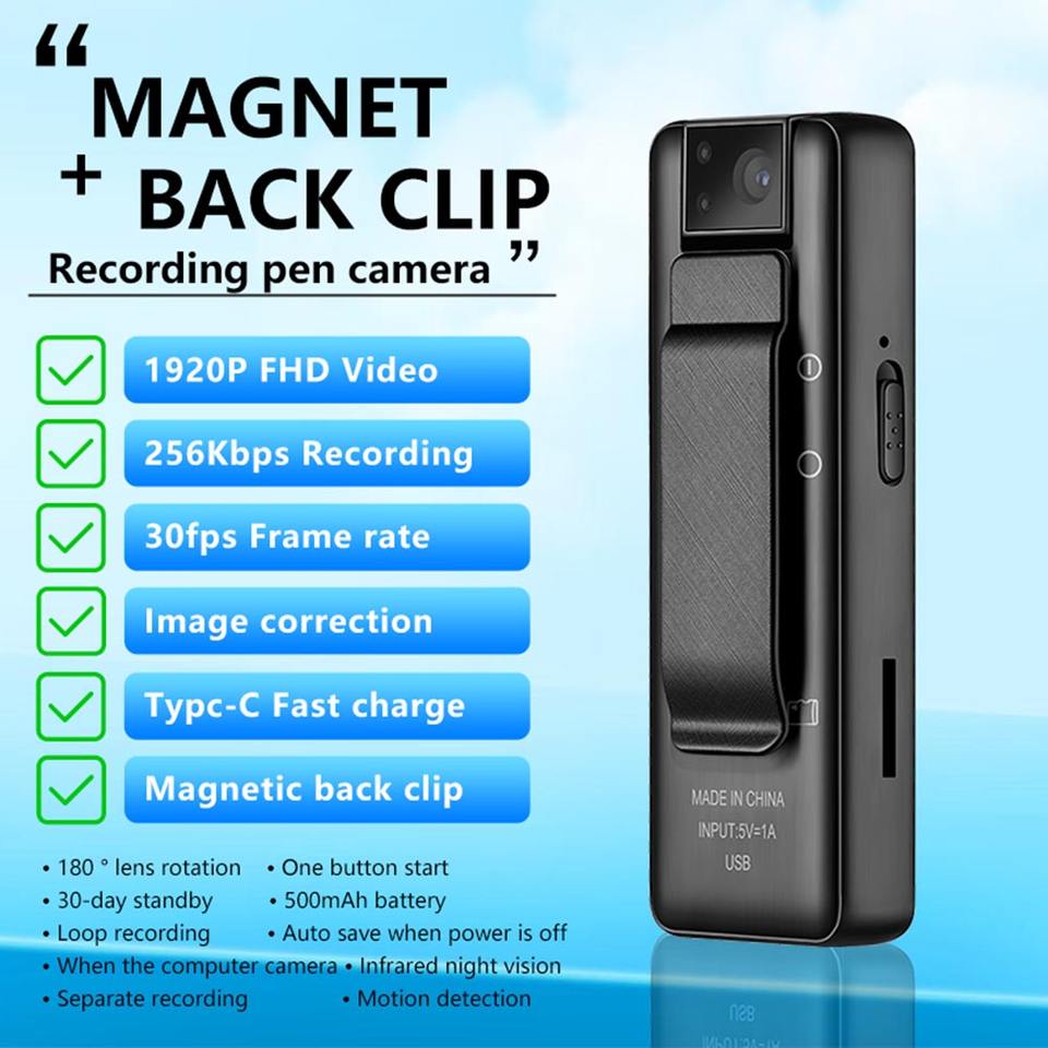 Caméra corporelle HD 1080P Enregistreur vidéo portable de petite taille avec enregistrement en boucle, batterie 500 mAh Caméra de poche portable Intérieur/Extérieur PQ384