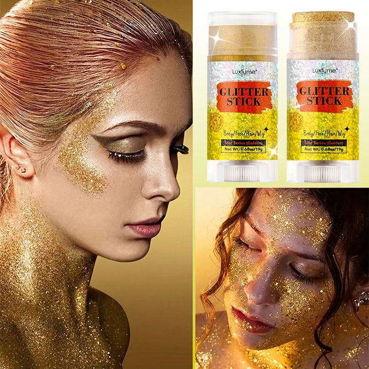 Stick illuminateur corporel scintillant, maquillage longue tenue, stick à paillettes fines dorées