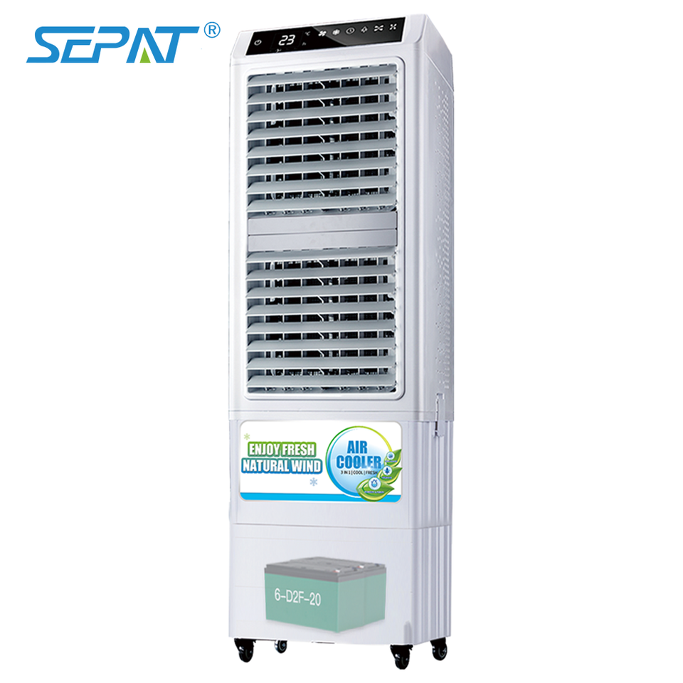 Refroidisseur d'Air Évaporatif Portatif et Mobile en Plastique avec Alimentation Solaire, Batterie Rechargeable 230V CA 24V CC pour la Maison