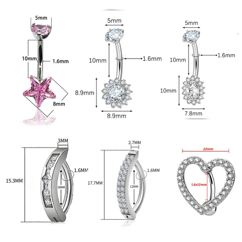 Piercing de nombril en titane hypoallergénique 14G avec étoile en zircon, bijoux en gros