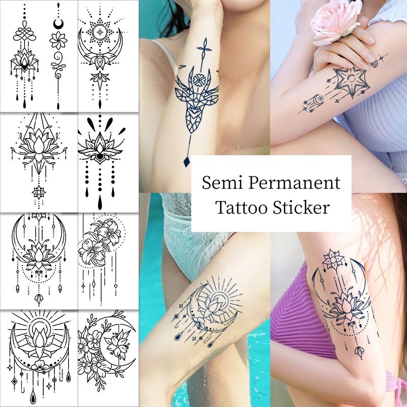 Mots-clés:Autocollant de tatouage de corps noir dessin au trait fleur papillon jetable