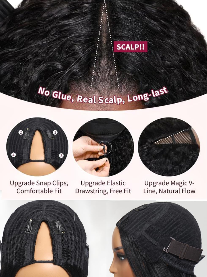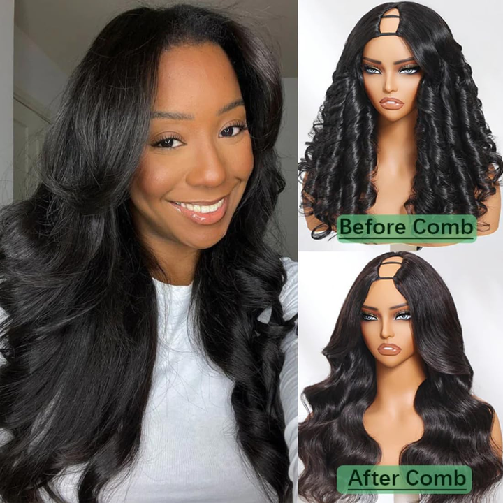 Vague de corps V partie perruque cheveux humains Clip sans colle en 100% vrais cheveux humains V-partie perruques sans colle sans coudre perruque pour les débutants amicale