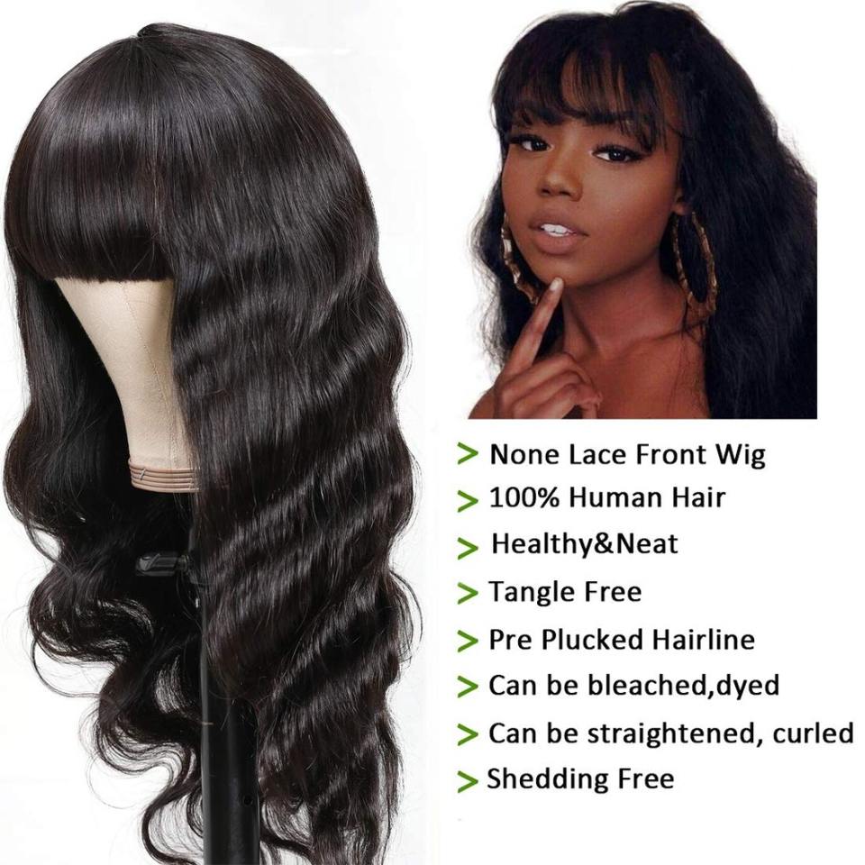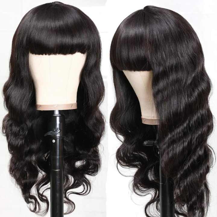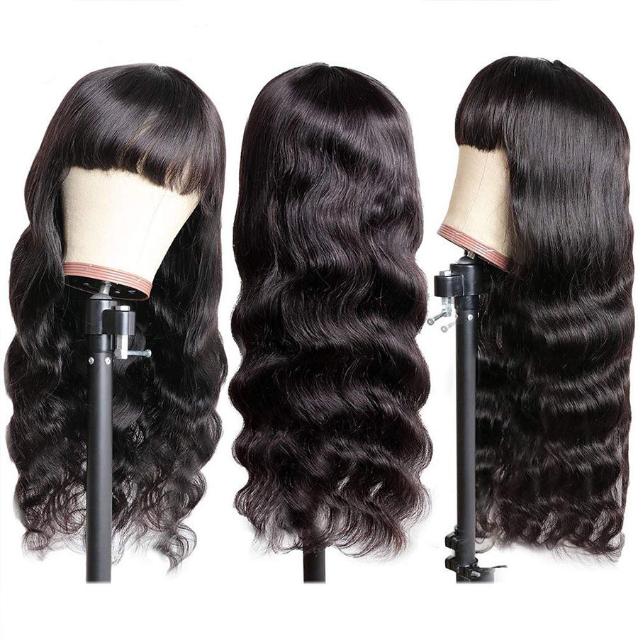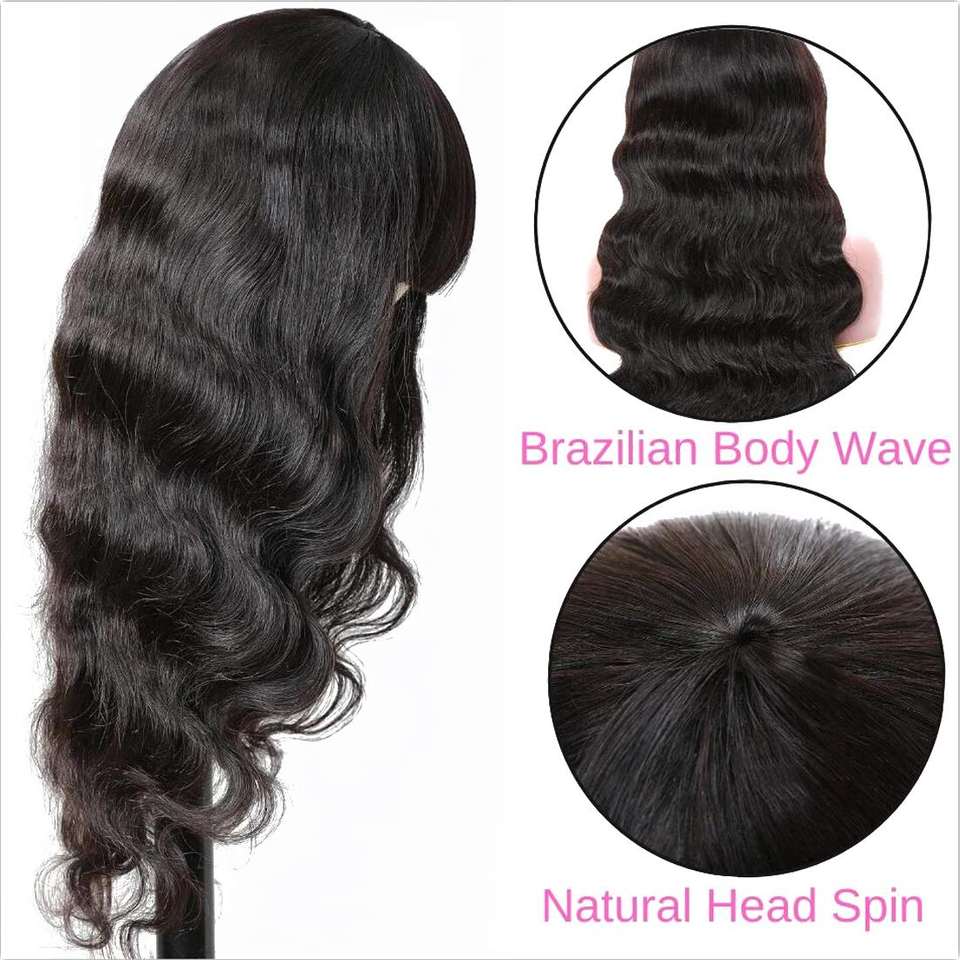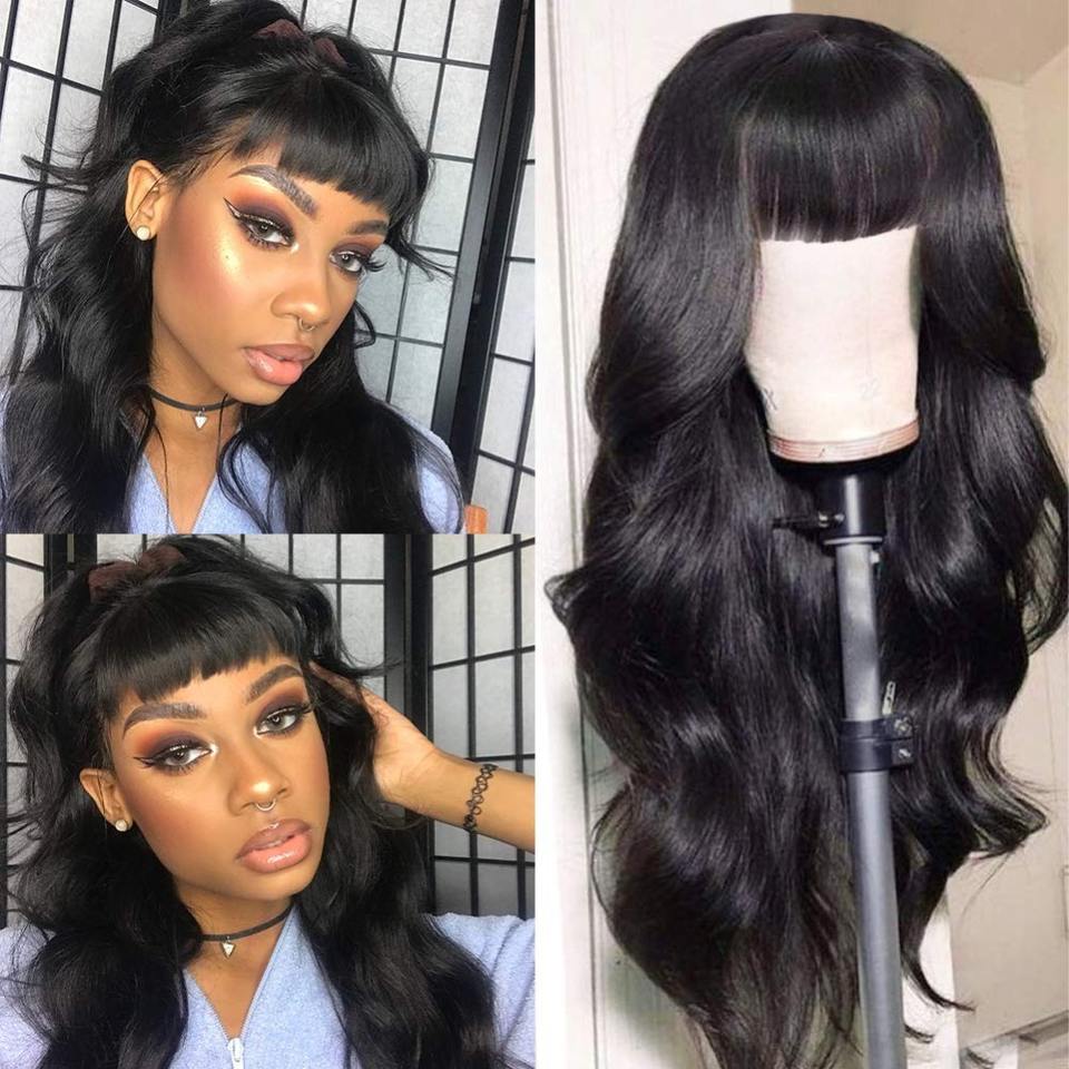 Perruque Body Wave avec Bangs Full Machine Made Natural Color Perruques de cheveux humains vierges brésiliens pour femmes noires