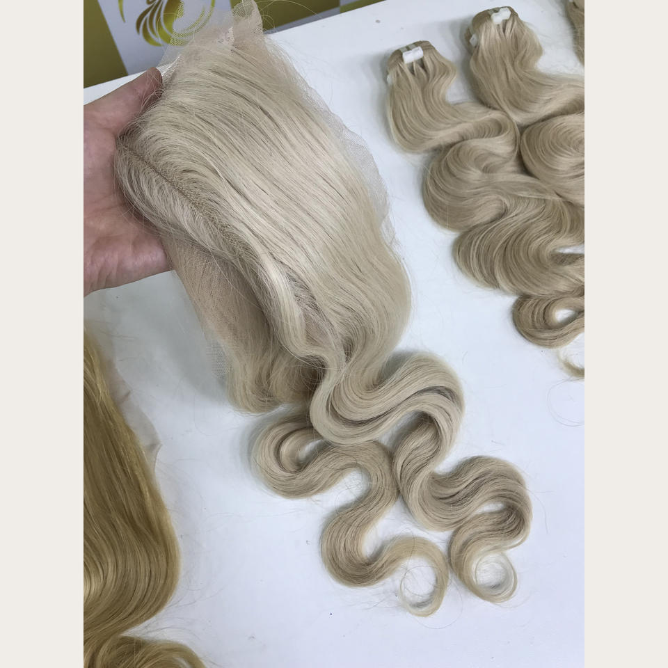 Perruques ondulées de cheveux humains bruts de haute qualité blond donneur unique Perruques à lacet frontal transparent vietnamien à cuticules alignées